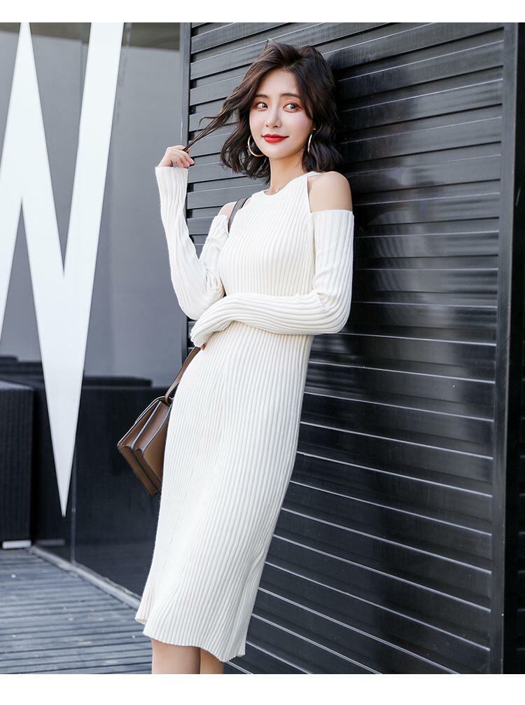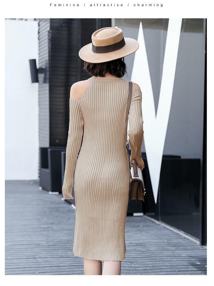 秋 冬 レディース ワンピース ニット オフショルダー 膝丈 セクシー カジュアル シンプル おしゃれ きれいめ 大人 キャンバス 学生 原宿系 黒 茶 白 3カラー ワンサイズ YN-9-113 | dress_sugar_moon