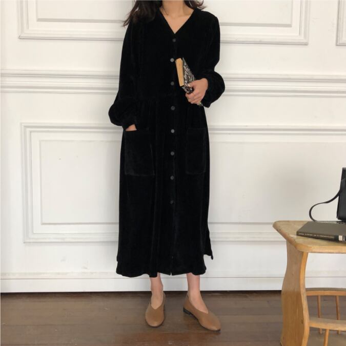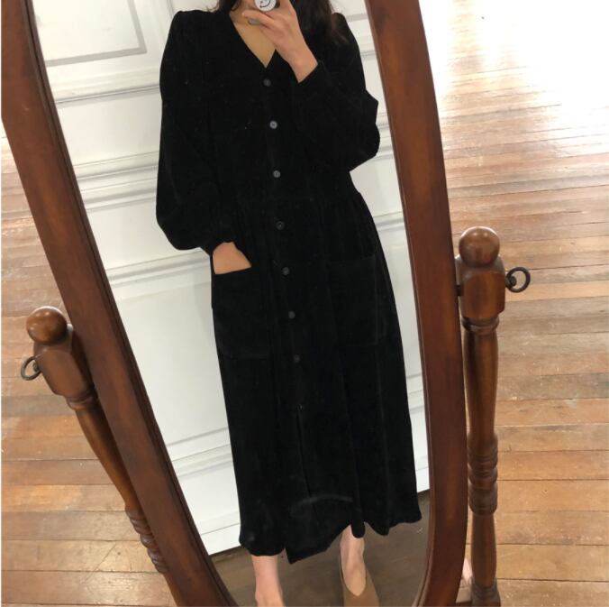秋 冬 レディース ワンピース ロングワンピース コーデュロイ レトロ カジュアル 長袖 ランタンスリーブ かわいい おしゃれ 韓国 きれいめ プチプラ FA-9-221 | dress_sugar_moon