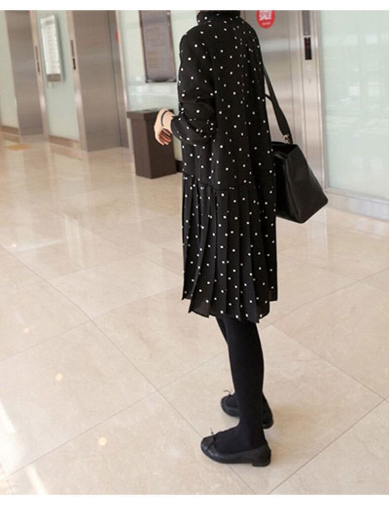 秋 冬 レディース ワンピース ロングワンピース ドット柄 水玉模様 ブラック 黒 プリーツ シフォン かわいい おしゃれ 韓国 きれいめ プチプラ FA-9-255 | dress_sugar_moon