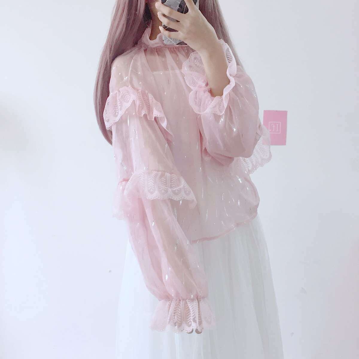 春 夏 レディース シャツ ブラウス ラメ キラキラ 袖コン バルーン袖 おしゃれ 可愛い ボトルネック 透け シースル シンプル 学生 キャンバス YN-9-127 | dress_sugar_moon
