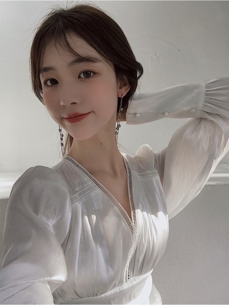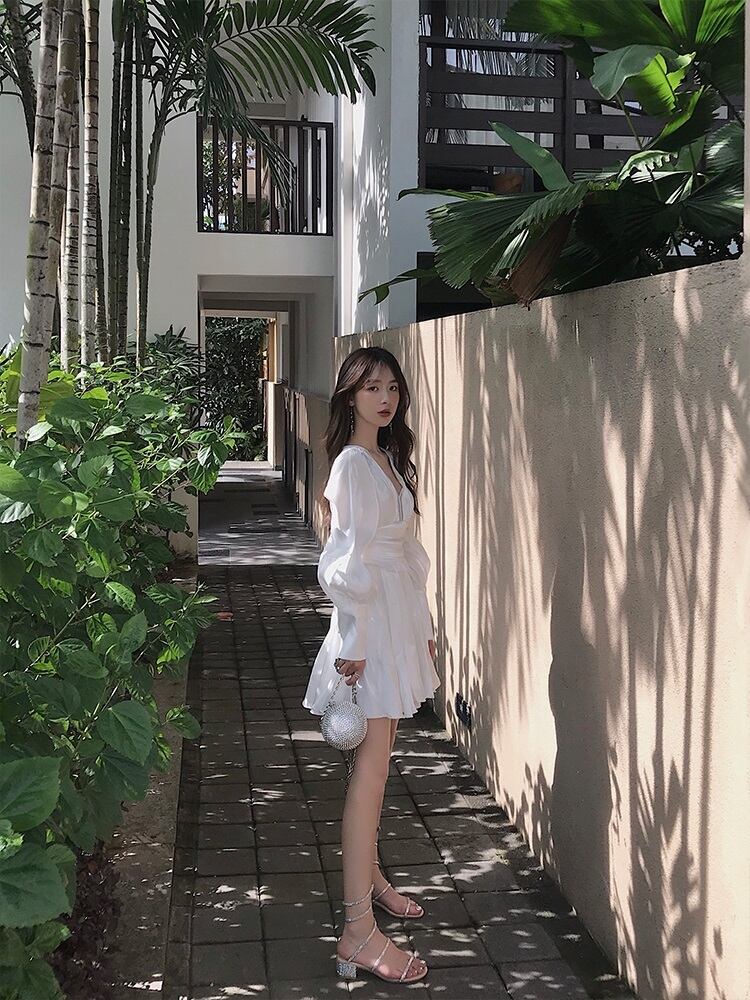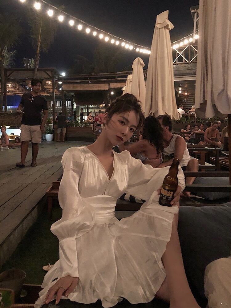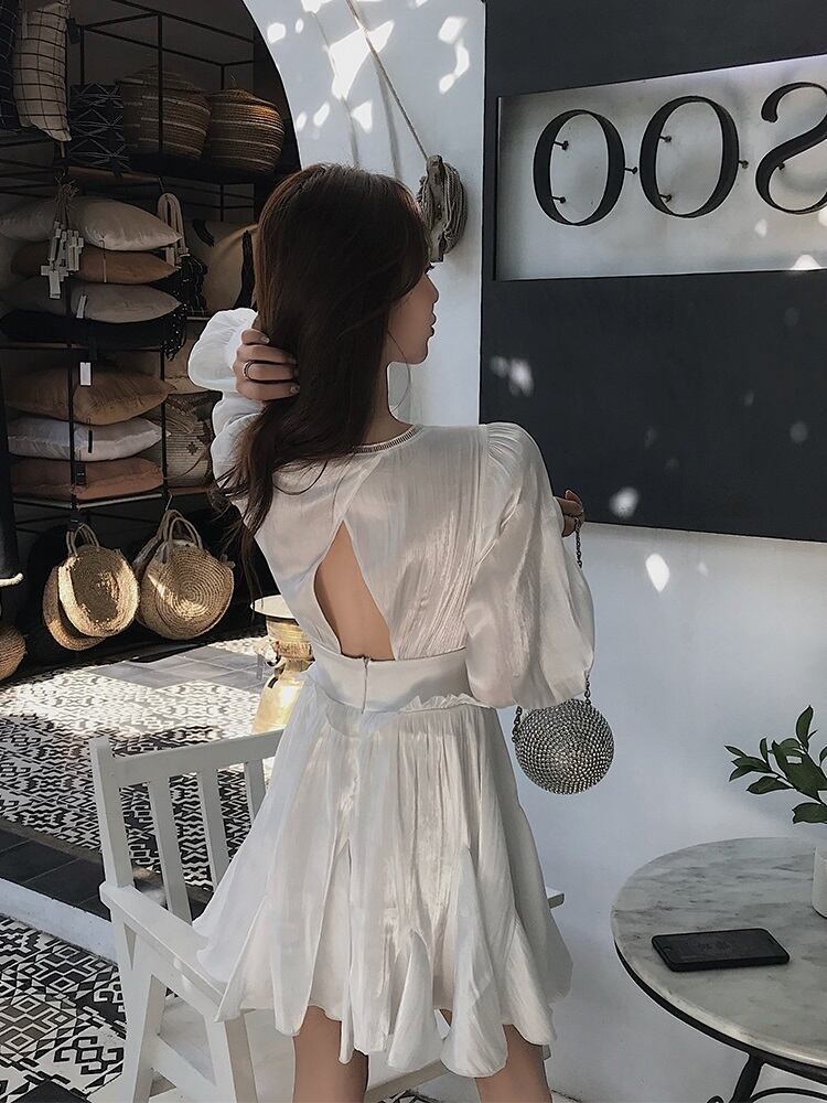 秋 冬 レディース ワンピース ひざ丈ワンピ ホワイト 白 スリム 長袖 セクシー Vネック 清楚 かわいい おしゃれ 韓国 きれいめ プチプラ FA-10-33 | dress_sugar_moon