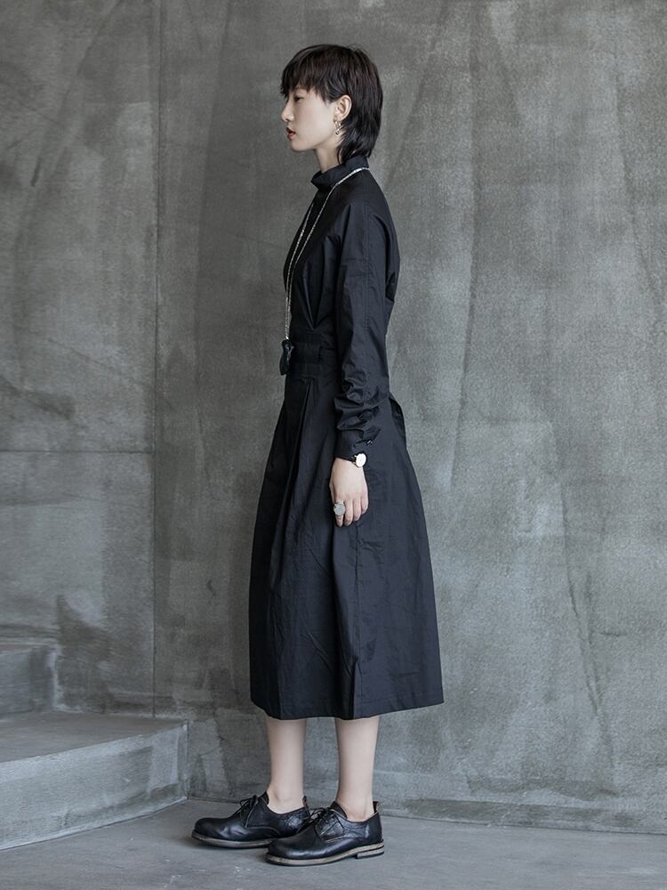 秋 冬 レディース ワンピース ロングワンピース ブラック 黒 長袖 レトロ ハイウエスト カジュアル かわいい おしゃれ 韓国 きれいめ プチプラ FA-10-73 | dress_sugar_moon