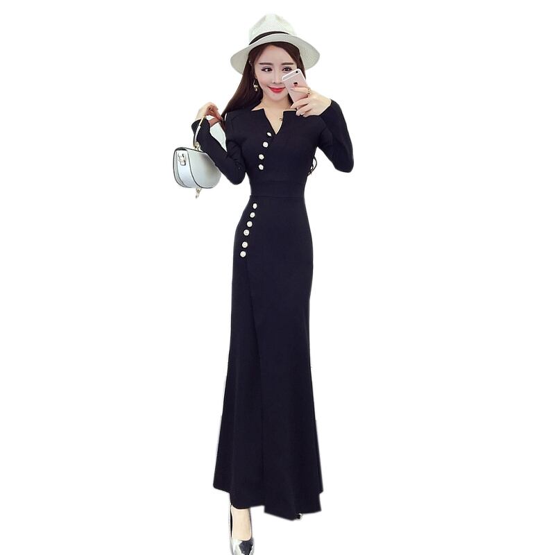 秋 冬 レディース ワンピース ロングワンピース スリット ブラック 黒 Vネック スリム タイト カジュアル かわいい おしゃれ 韓国 きれいめ プチプラ FA-10-79 | dress_sugar_moon