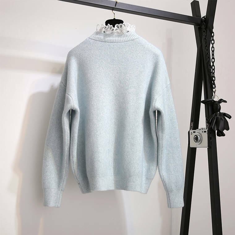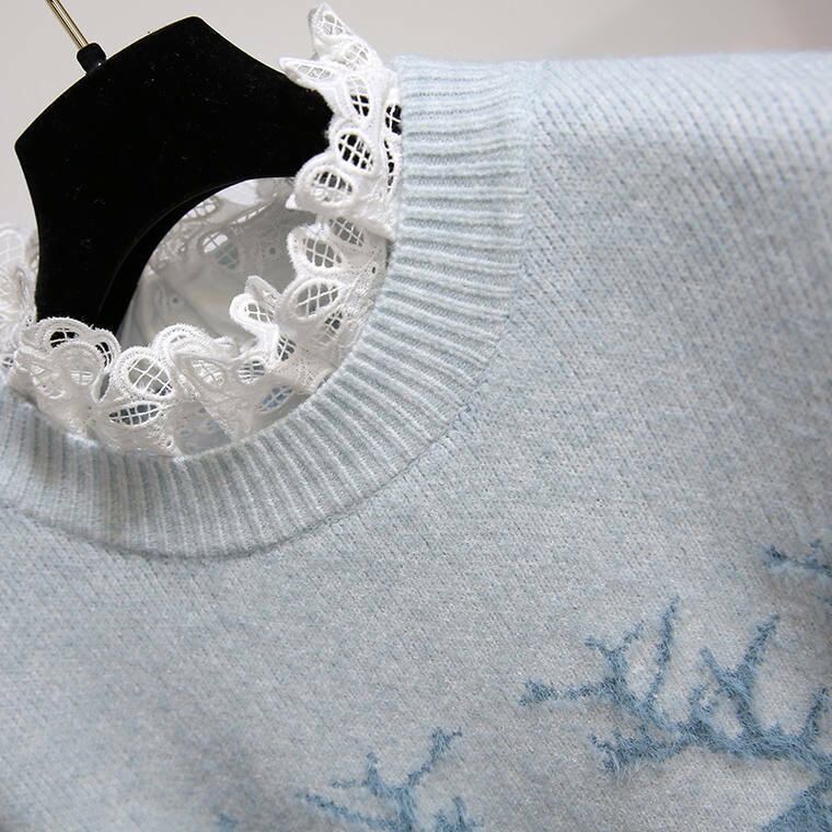 秋 冬 レディース トップス トレーナー ニット フリル レース ブルー ワンカラー ワンサイズ M トナカイ クリスマス イベント デート ニット YN-10-14 | dress_sugar_moon