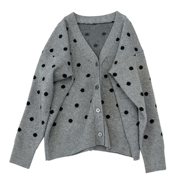 秋 冬 レディース トップス カーディガン アウターニット 水玉 ドット 灰 茶 紺 3カラー 普段着 部屋着 カジュアル おしゃれ 可愛い デート 学生 キャンバス YN-10-21 | dress_sugar_moon