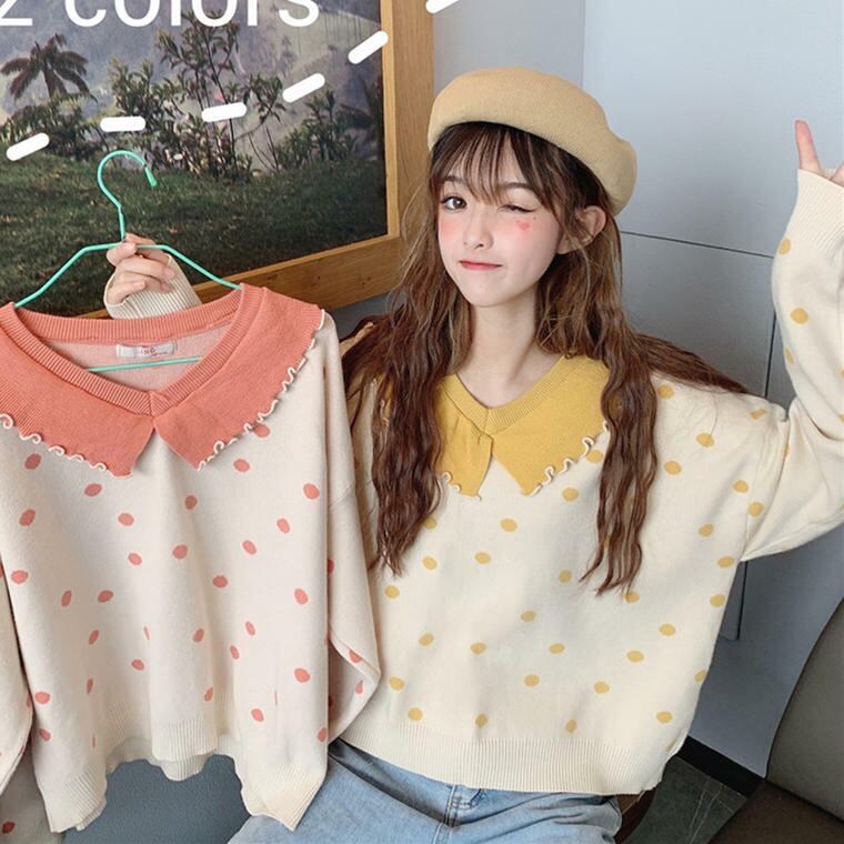 秋 冬 レディース トップス ニット ドット柄 水玉 シンプル おしゃれ カジュアル 可愛い 普段着 部屋着 学生 キャンパス デート 原宿系 パステル YN-10-29 | dress_sugar_moon