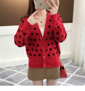 秋 冬 レディース トップス カーディガン アウター ニット ドット柄 水玉 シンプル おしゃれ カジュアル 可愛い 普段着 部屋着 学生 キャンパス デート OL オフィス Vネック YN-10-31 | dress_sugar_moon
