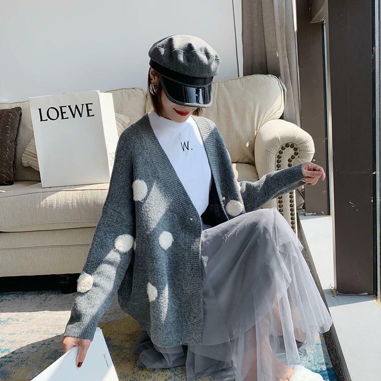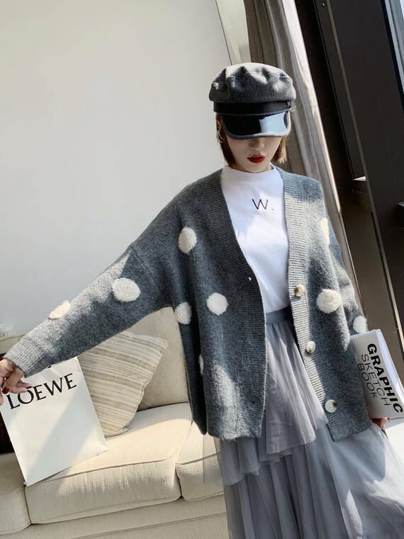 秋 冬 レディース トップス カーディガン アウター ニット ドット柄 水玉 シンプル おしゃれ カジュアル 可愛い 普段着 部屋着 学生 キャンパス デート OL オフィス YN-10-35 | dress_sugar_moon