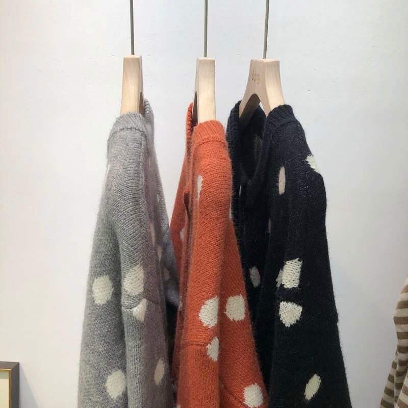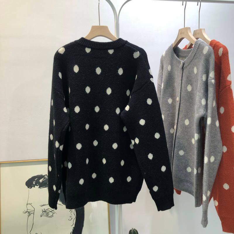 秋 冬 レディース トップス カーディガン アウター ニット ドット柄 水玉 シンプル おしゃれ カジュアル 可愛い 普段着 部屋着 学生 キャンパス デート OL オフィス 灰 橙 黒 YN-10-37 | dress_sugar_moon