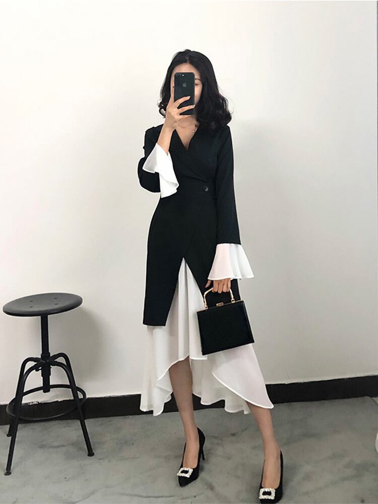 秋 冬 レディース ワンピース ロングワンピース 大きいサイズ シック アシンメトリー 不規則 カジュアル かわいい おしゃれ 韓国 きれいめ プチプラ FA-10-107 | dress_sugar_moon