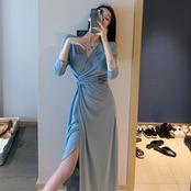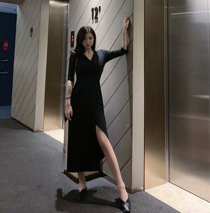 秋 冬 レディース ワンピース ロングワンピース 長袖 Vネック レトロ ハイウエスト カジュアル かわいい おしゃれ 韓国 きれいめ プチプラ FA-10-153 | dress_sugar_moon