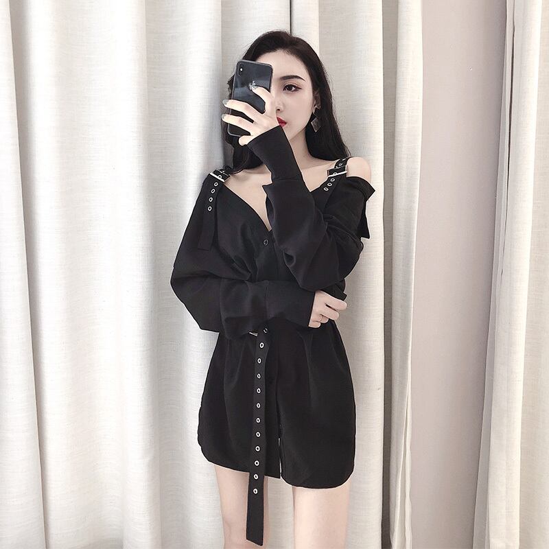 秋 冬 レディース ワンピース ミニワンピ ブラック 黒 長袖 セクシー ハイウエスト Vネック かわいい おしゃれ 韓国 きれいめ プチプラ FA-10-177 | dress_sugar_moon