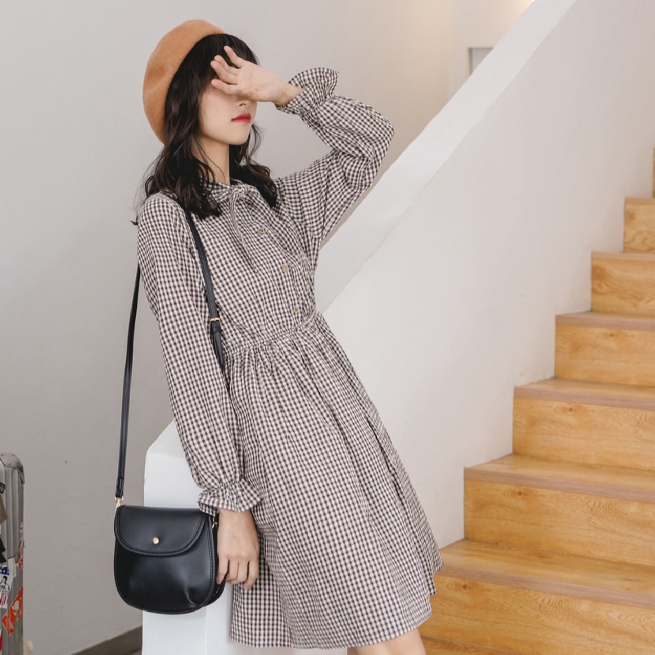 秋 冬 レディース ワンピース ロングワンピース チェック柄 格子縞 レトロ 長袖 ハイウエスト かわいい おしゃれ 韓国 きれいめ プチプラ FA-10-192 | dress_sugar_moon