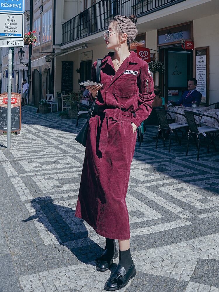 秋 冬 レディース ワンピース ロングワンピース コーデュロイ 長袖 カジュアル ウエストベルト かわいい おしゃれ 韓国 きれいめ プチプラ FA-10-198 | dress_sugar_moon