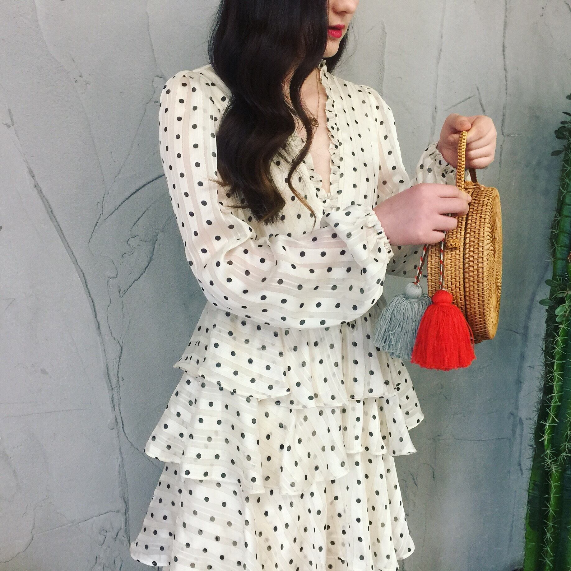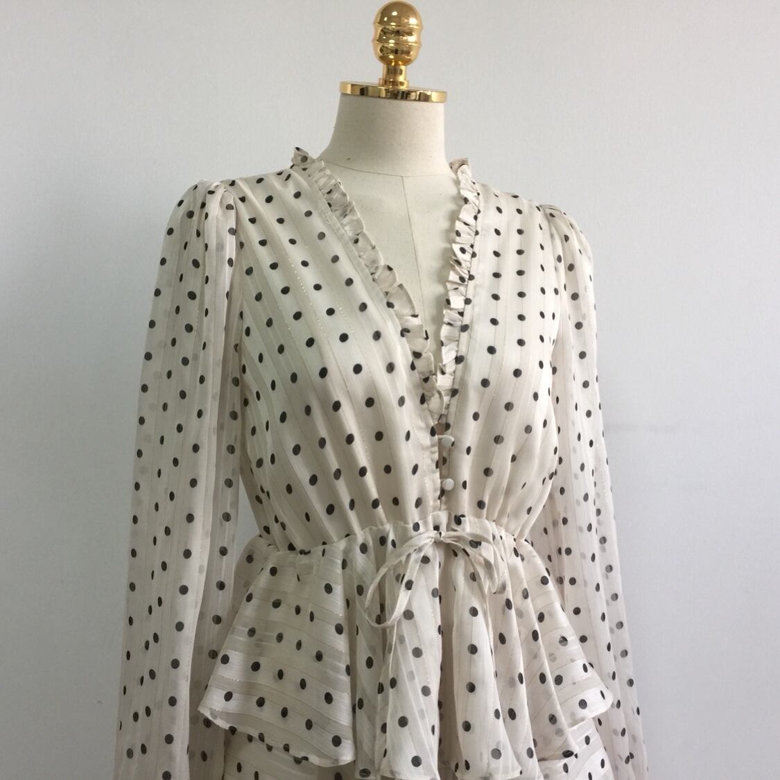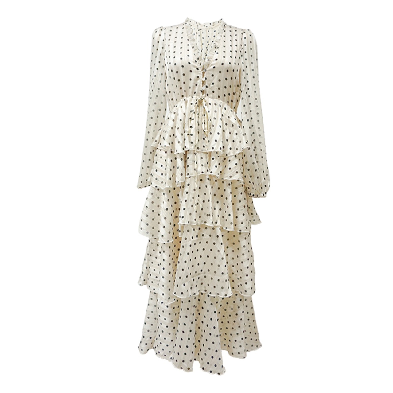 秋 冬 レディース ワンピース ロングワンピース アプリコット 長袖 ドット柄 水玉模様 カジュアル かわいい おしゃれ 韓国 きれいめ プチプラ FA-10-200 | dress_sugar_moon