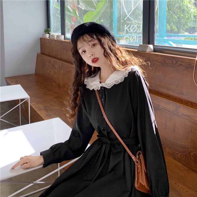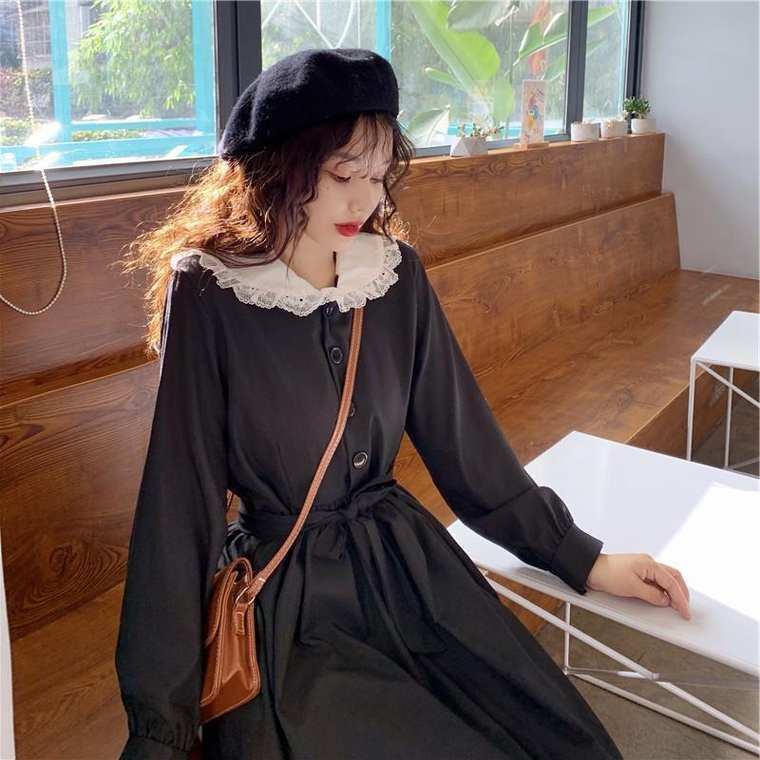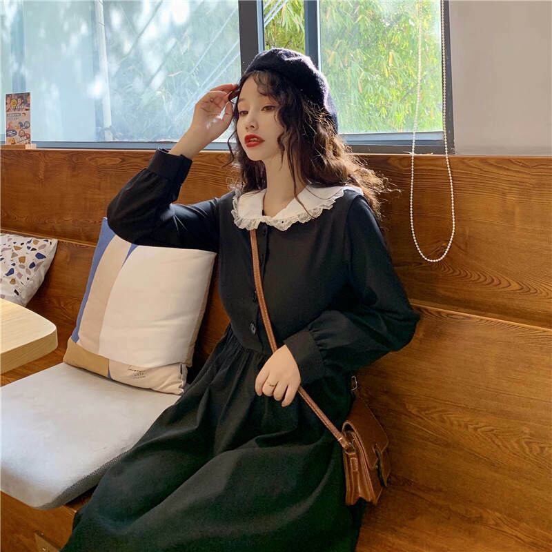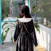 秋 冬 レディース ワンピース ミドル丈 膝下 シンプル 大きいサイズ ゴスロリ ゴシック ロリータ 原宿系 フリル 長袖 イベント 普段着 コスプレ L XL 2XL 3XL 4XL YN-10-104 | dress_sugar_moon