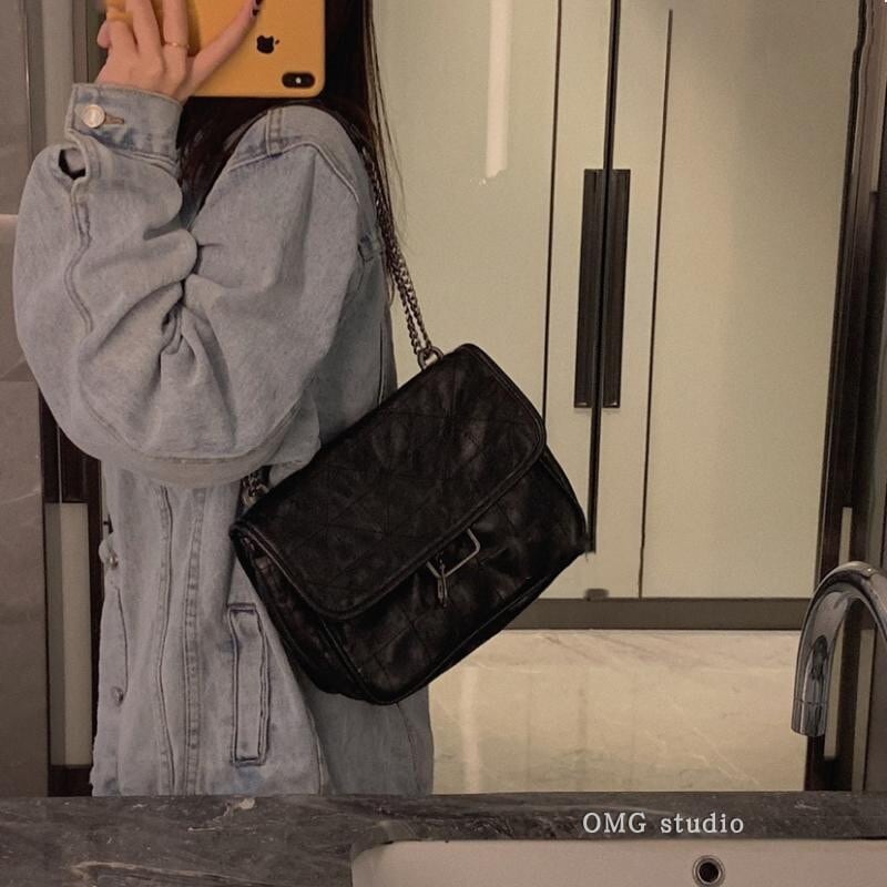 秋 冬 レディース バッグ ショルダーバッグ チェーン レトロ カジュアル ブラック 黒 大きめ かわいい おしゃれ 韓国 きれいめ プチプラ FA-11-106 | dress_sugar_moon
