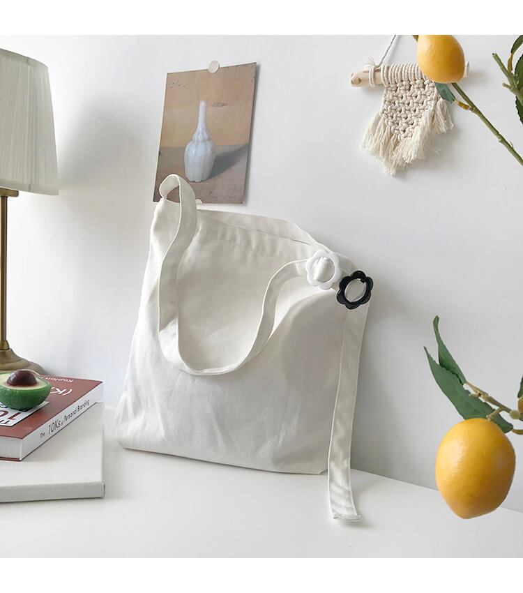 秋 冬 レディース 鞄 バッグ ショルダーバッグ 大容量 シンプル 白 黒 2カラー 花 ベルト調整可 可愛い キュート 学生 通学 キャンバス 原宿系 YN-11-61 | dress_sugar_moon