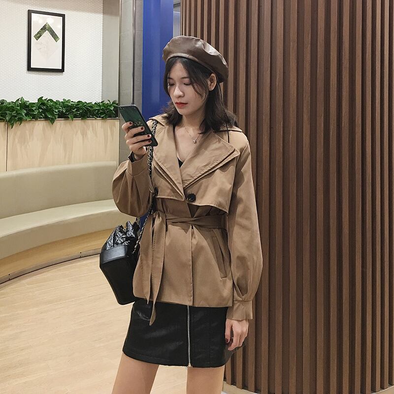 秋 冬 レディース アウター トレンチコート ショート丈コート スリム ハイウエスト レトロ シンプル かわいい おしゃれ 韓国 きれいめ プチプラ FA-11-207 | dress_sugar_moon
