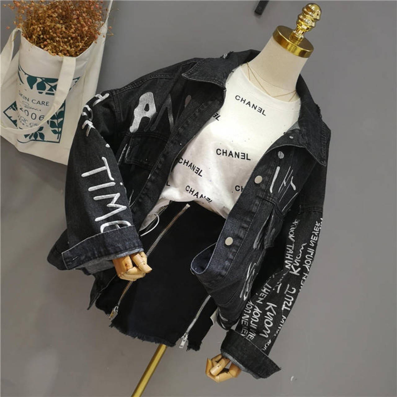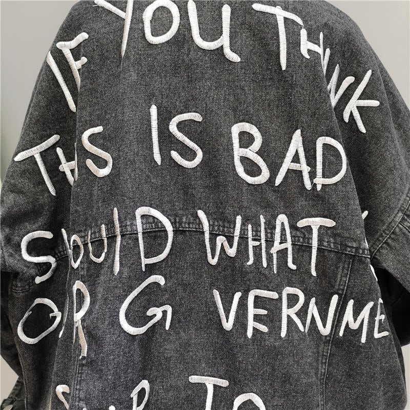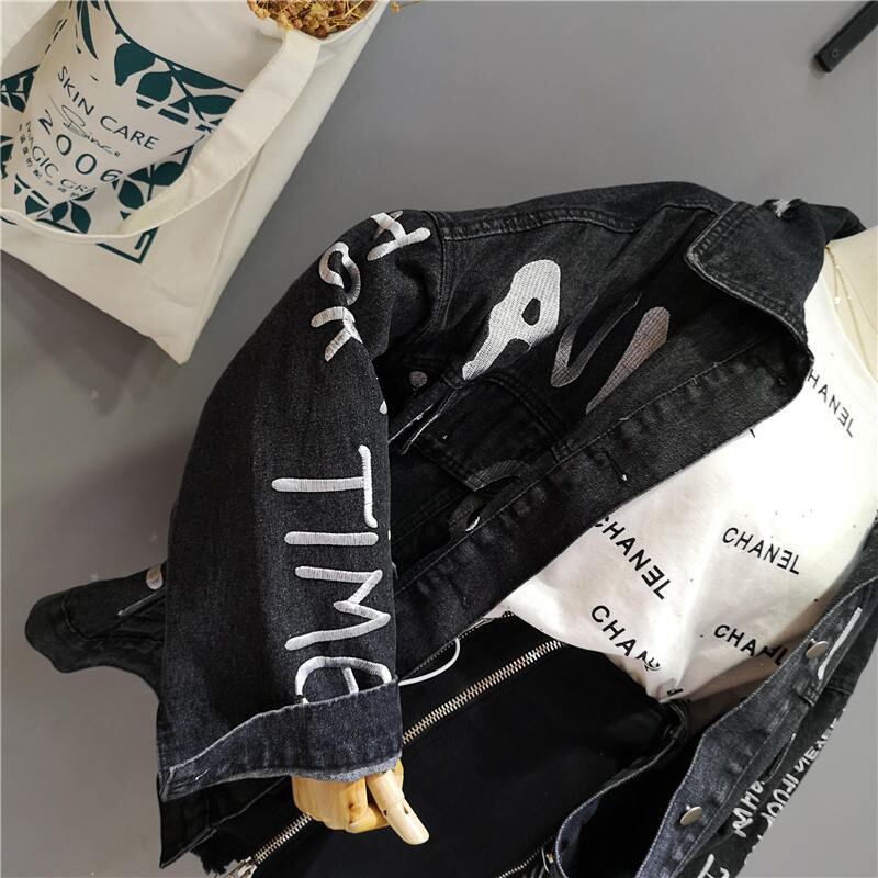 秋 冬 レディース アウター ジャケット デニム デニムジャケット Gジャン かっこいい 大人 おしゃれ ワンカラー 黒 英字 ロゴ プチプラ 韓国 双子コーデ 原宿系 YN-11-72 | dress_sugar_moon