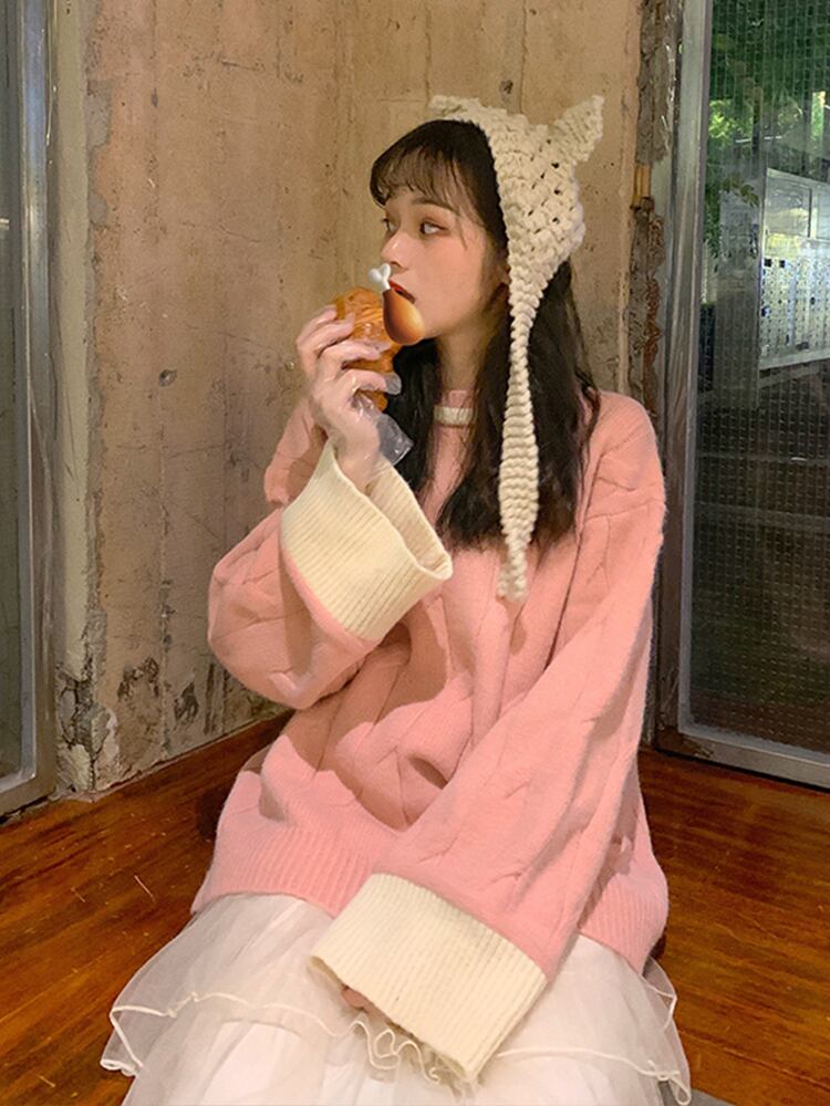 秋 冬 レディース トップス ニット セーター 長袖 カジュアル レトロ オーバーサイズ ビックシルエット かわいい おしゃれ 韓国 きれいめ プチプラ FA-12-8 | dress_sugar_moon