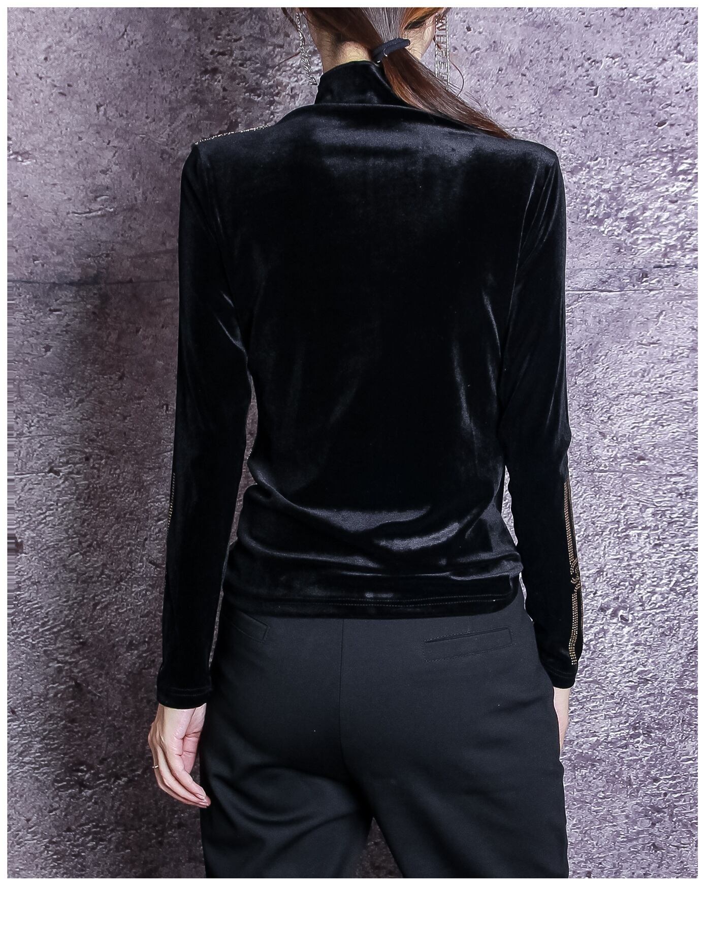 秋 冬 レディース トップス 長袖 ハーフタートルネック バイカラー ブラック 黒 キラキラ エレガント かわいい おしゃれ 韓国 きれいめ プチプラ FA-12-21 | dress_sugar_moon