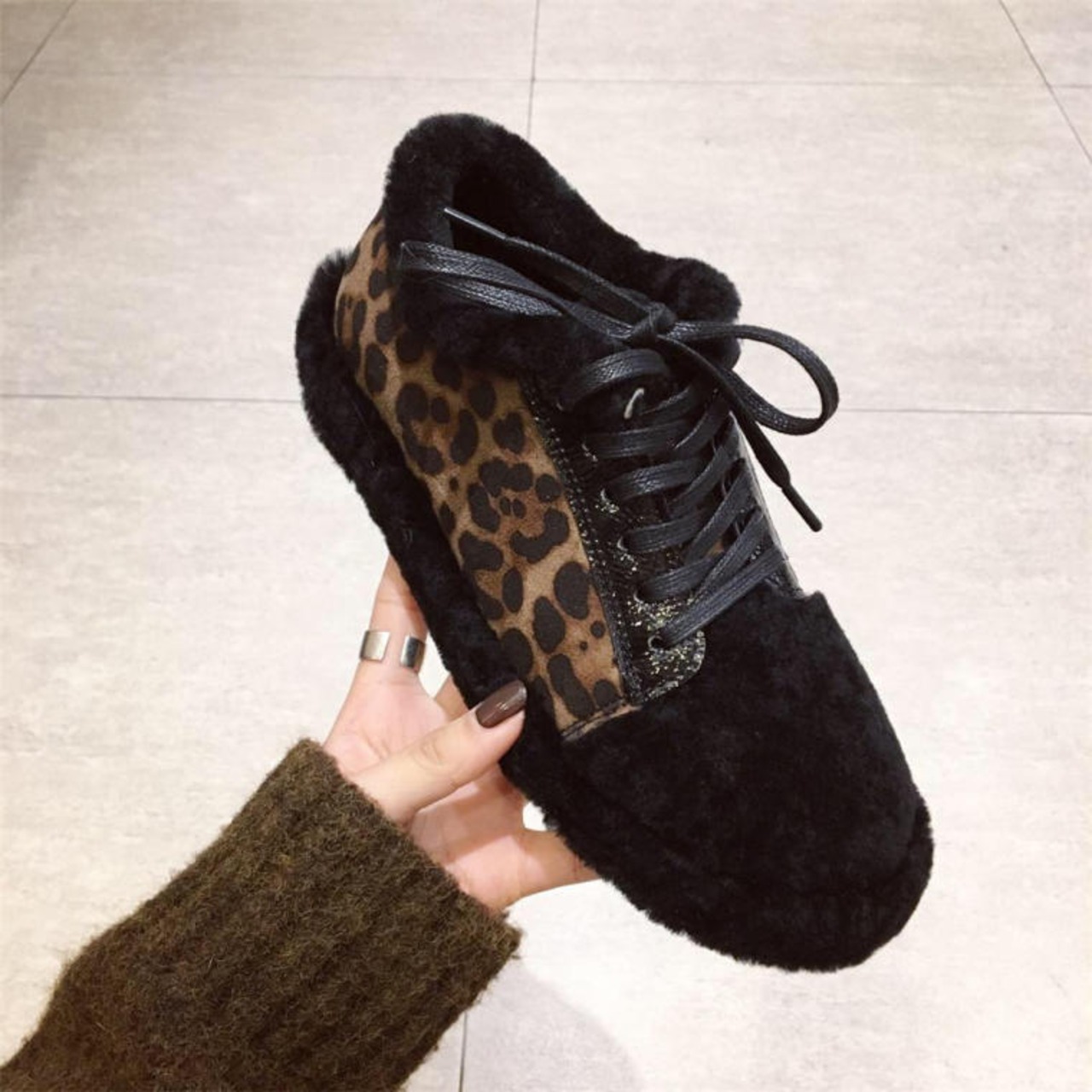 おしゃれな豹柄もこもこスニーカー♪