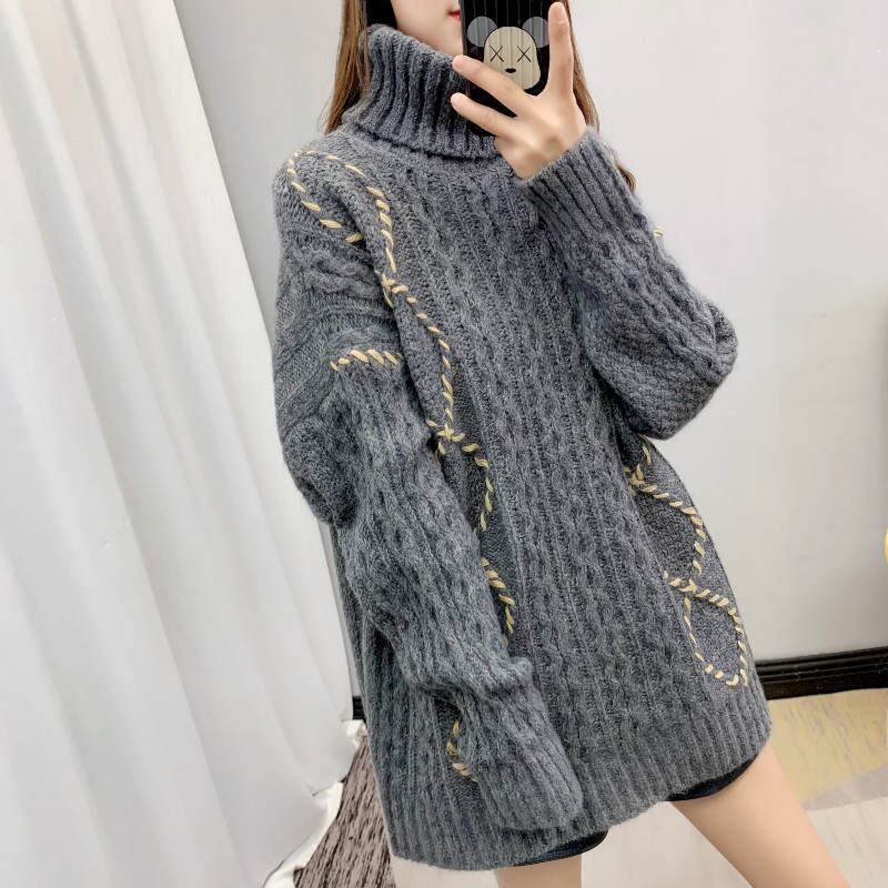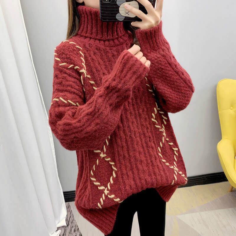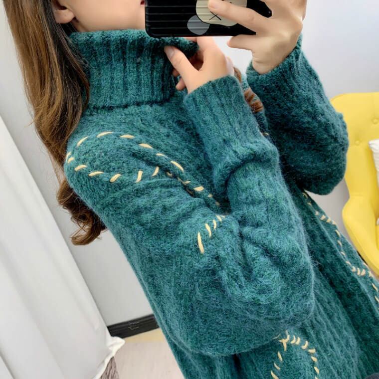 秋 冬 レディース トップス ニット ハイネック ボトルネック 暖かい 防寒 ゆったり 体型カバー 可愛い おしゃれ 原宿系 上品 韓国 きれいめ プチプラ 刺繍 YN-1-13 | dress_sugar_moon