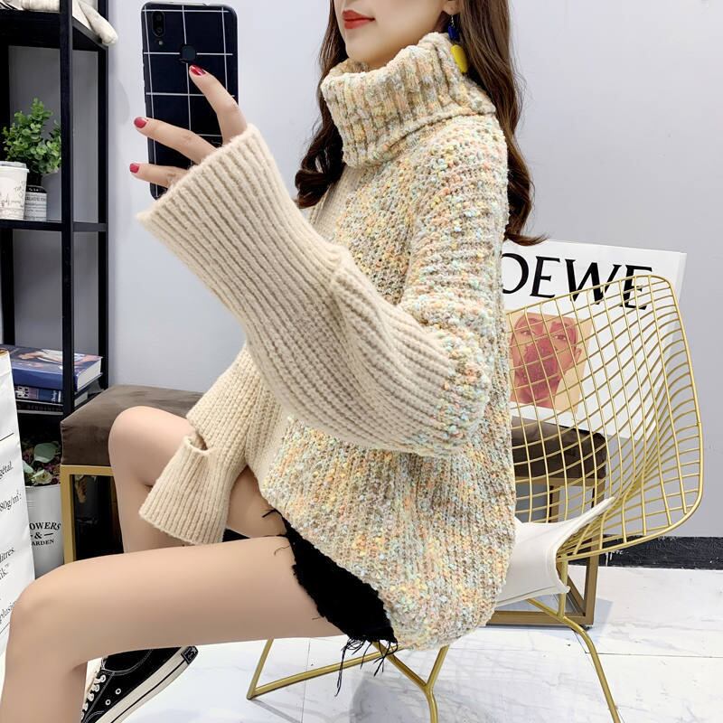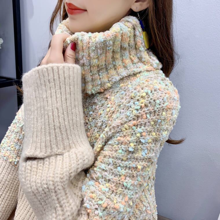 秋 冬 レディース トップス ニット ニットトップス 暖かい 防寒 ツートーン ベージュ カラフル ワンカラー ワンサイズ おしゃれ ハイネック タートルネック 原宿系 ゆったり 体型カバー 韓国 きれいめ プチプラ YN-1-17 | dress_sugar_moon