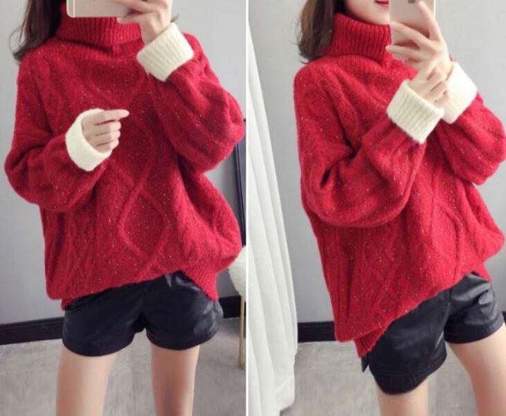 秋 冬 レディース トップス ニット ニットトップス 暖かい 防寒 ハイネック タートルネック ボトルネック 青 赤 ツートーン おしゃれ 可愛い 韓国 プチプラ きれいめ YN-1-20 | dress_sugar_moon