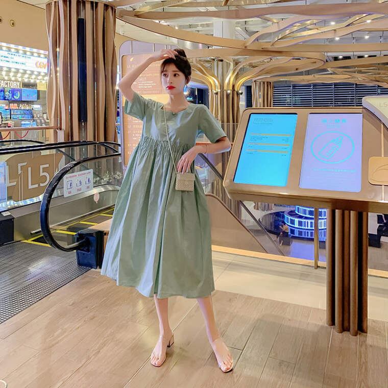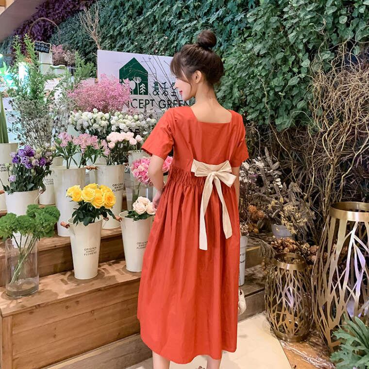 春 夏 レディース ワンピース 膝丈 ヒザ下 半袖 大きいサイズ バックリボン おしゃれ 可愛い 赤 緑 2カラー ビビット 原宿系 韓国 きれいめ プチプラ YN-1-40 | dress_sugar_moon