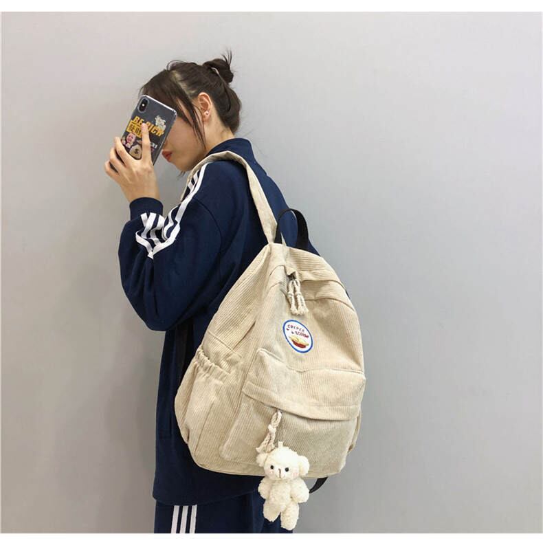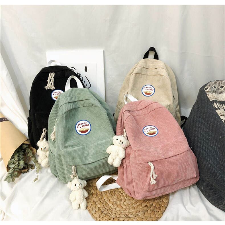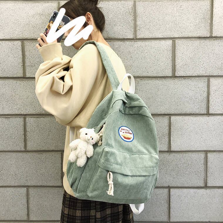 秋 冬 レディース リュック リュックサック おしゃれ 可愛い くま 4カラー 黒 ベージュ 緑 桃 学生 キャンパス 大容量 コーデュロイ 韓国 きれいめ プチプラ YN-3-76 | dress_sugar_moon