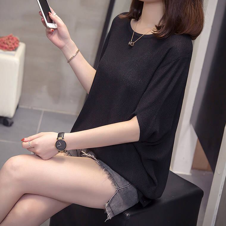 春 夏 レディース Tシャツ トップス おしゃれ シンプル 上品 ラウンドネック 5分袖 灰 青 黒 3カラー ゆったり 体型カバー 大きいサイズ L XL 2XL 3XL 4XL オフィス OL 通勤 韓国 きれいめ プチプラ YN-4-18 | dress_sugar_moon