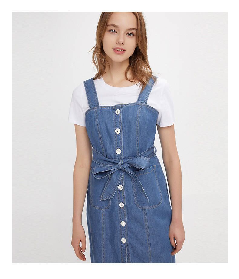 春 夏 レディース ワンピース デニム ミニ丈 膝上 カジュアル おしゃれ ハイウエスト リボン ベルト S M L XL 4サイズ 韓国 きれいめ プチプラ YN-4-35 | dress_sugar_moon