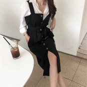 春 夏 レディース セットアップ ツーピース スリット ワンピース トップス ブラウス シャツ ワンカラー おしゃれ 大人 可愛い カジュアル 韓国 きれいめ プチプラ YN-4-38 | dress_sugar_moon