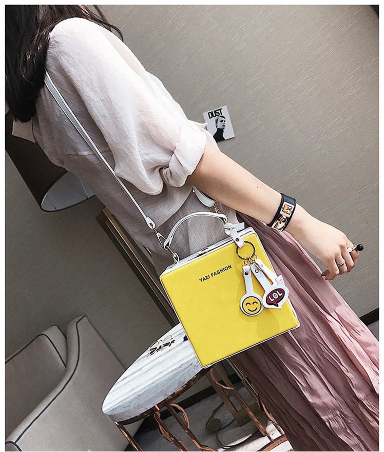 春 夏 レディース 鞄 バッグ ハンドバッグ ショルダーバッグ 2way にこちゃん 可愛い 白 青 黄 3カラー 四角 おしゃれ ユニーク 原宿系 可愛い 韓国 きれいめ プチプラ YN-4-94 | dress_sugar_moon