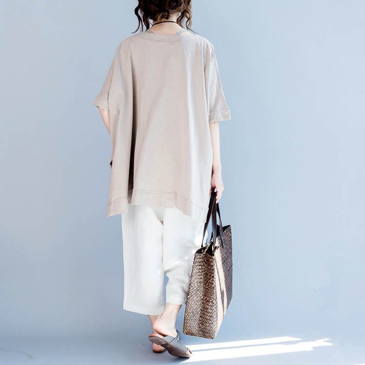 春 夏 レディース トップス Tシャツ カットソー 白 ベージュ 2カラー ワンサイズ ゆったり ラウンドネック きれいめ 落ち着いた カジュアル ママ ゆったり 韓国 プチプラ YN-5-14 | dress_sugar_moon
