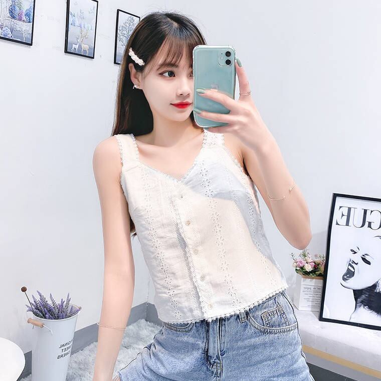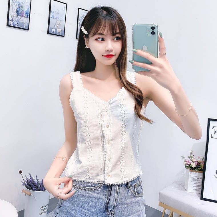 春 夏 レディース トップス シャツ タンクトップ 花柄刺繍 ビスチェ ボタン フロントボタン 上品 可愛い 涼しい キャミソール 韓国 きれいめ プチプラ YN-5-49 | dress_sugar_moon