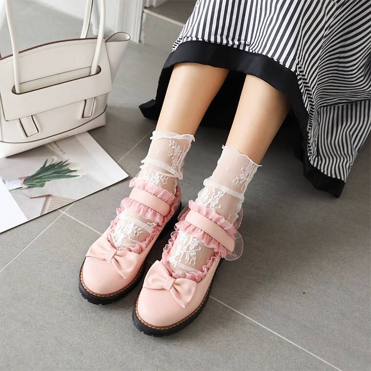 春 夏 レディース パンプス 靴 くつ ローファー ローヒール ゴスロリ ロリータ 原宿系 フリル リボン 可愛い キュート ゆめかわ 韓国 きれいめ プチプラ YN-5-56 | dress_sugar_moon