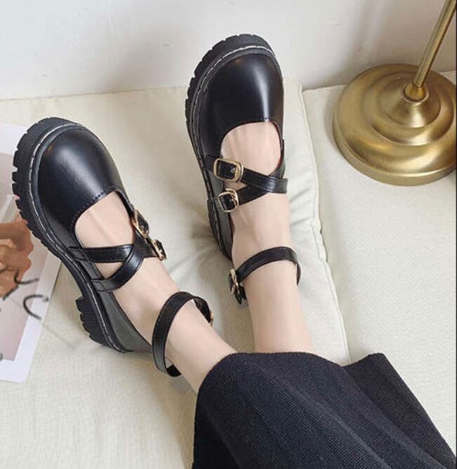 春 夏 レディース 靴 くつ パンプス ローヒール クロスベルト おしゃれ かわいい レトロ 黒 2種 艶あり つやなし 学生 キャンバス 韓国 きれいめ プチプラ YN-5-58. | dress_sugar_moon