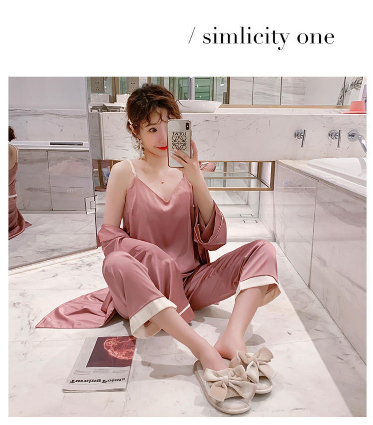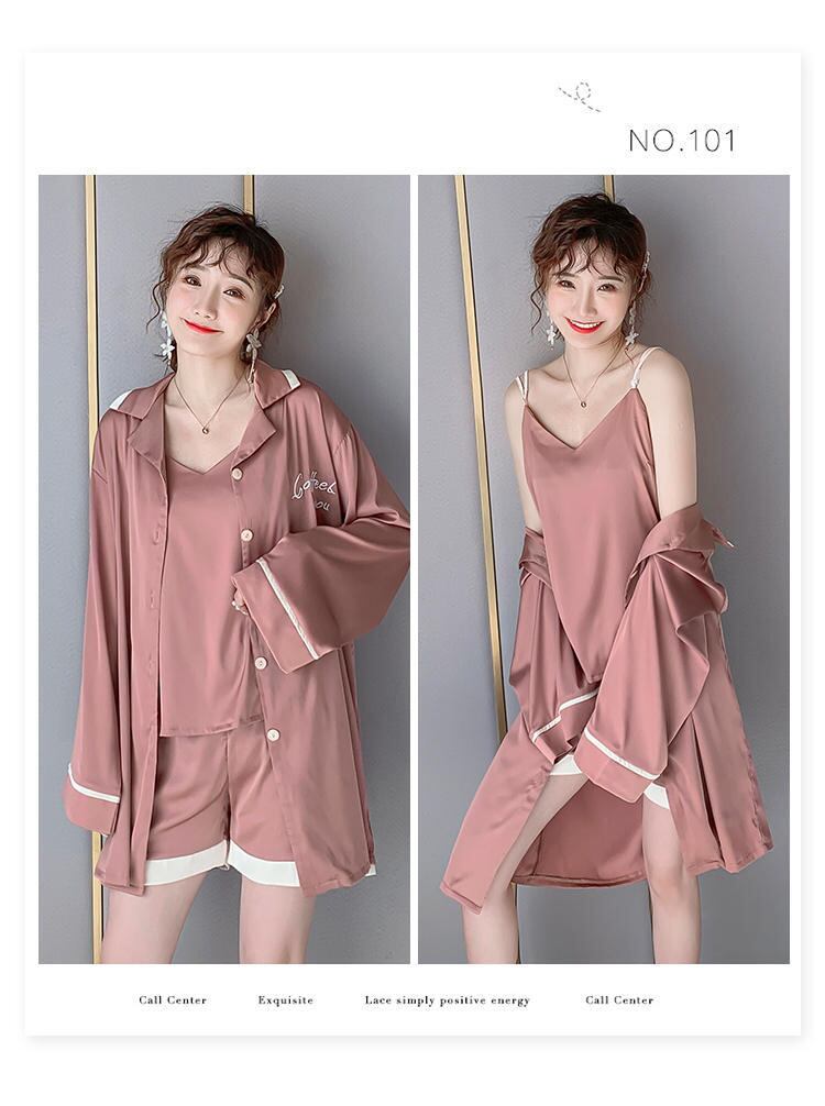 春 夏 レディース ルームウェア パジャマ 4点セット 青 桃 2カラー 長袖 タンクトップ ショートパンツ ロングパンツ ゆったり さらっと 上品 おしゃれ 可愛い 韓国 きれいめ プチプラ YN-5-83 | dress_sugar_moon