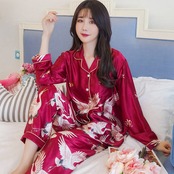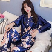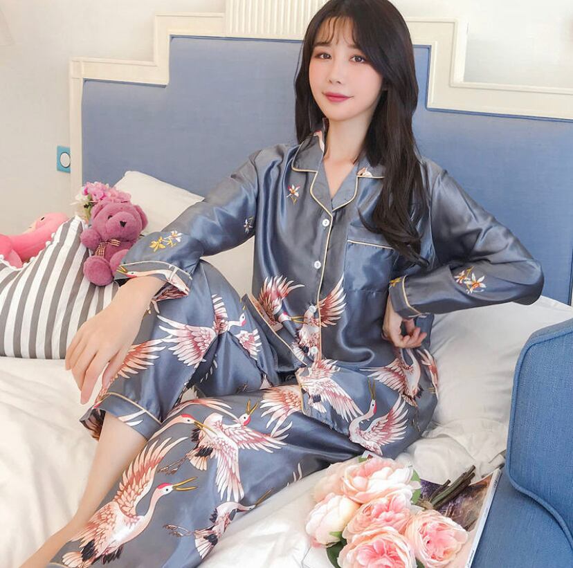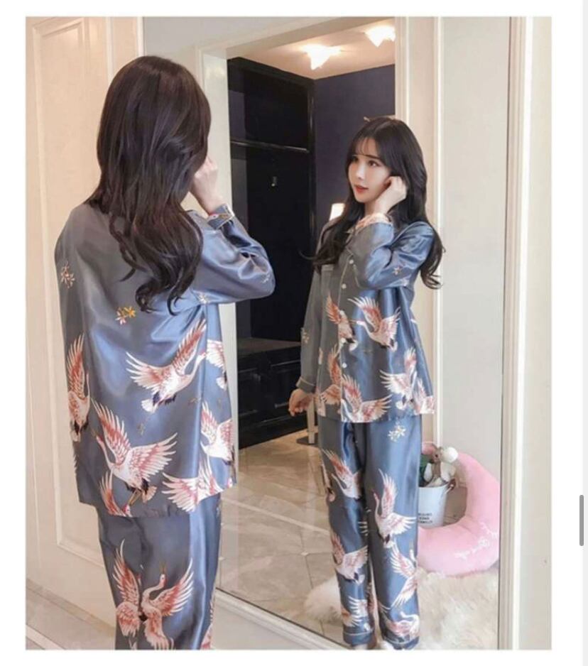 春 夏 レディース ルームウェア パジャマ 上下セット ツーピースセット 2点セット 桃 赤 緑 青 金 銀 紫 鶴赤 鶴灰 鶴青 葉青 葉ベージュ 大きいサイズ ゆったり さらっと 体型カバー シンプル 柄物 おしゃれ 可愛い 上品 大人 韓国 きれいめ プチプラ YN-5-85 | dress_sugar_moon