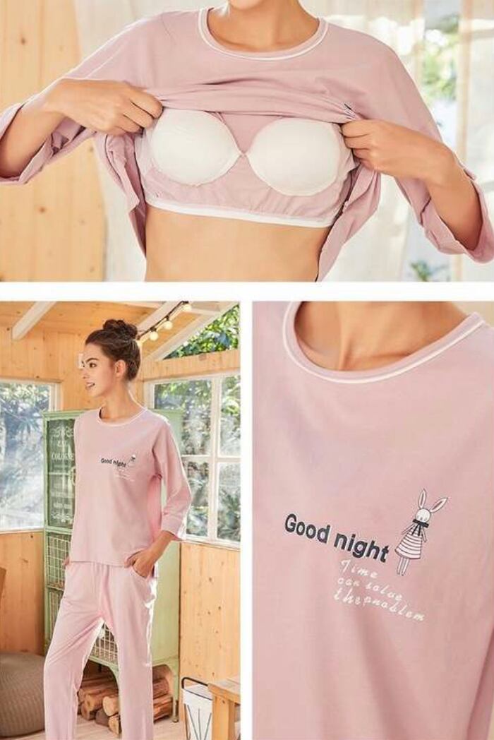 春 夏 レディース ルームウェア パジャマ パット付き 大きいサイズ ゆったり 体型カバー 桃 青 灰 3カラー うさぎ 可愛い シンプル 韓国 きれいめ プチプラ YN-5-95 | dress_sugar_moon