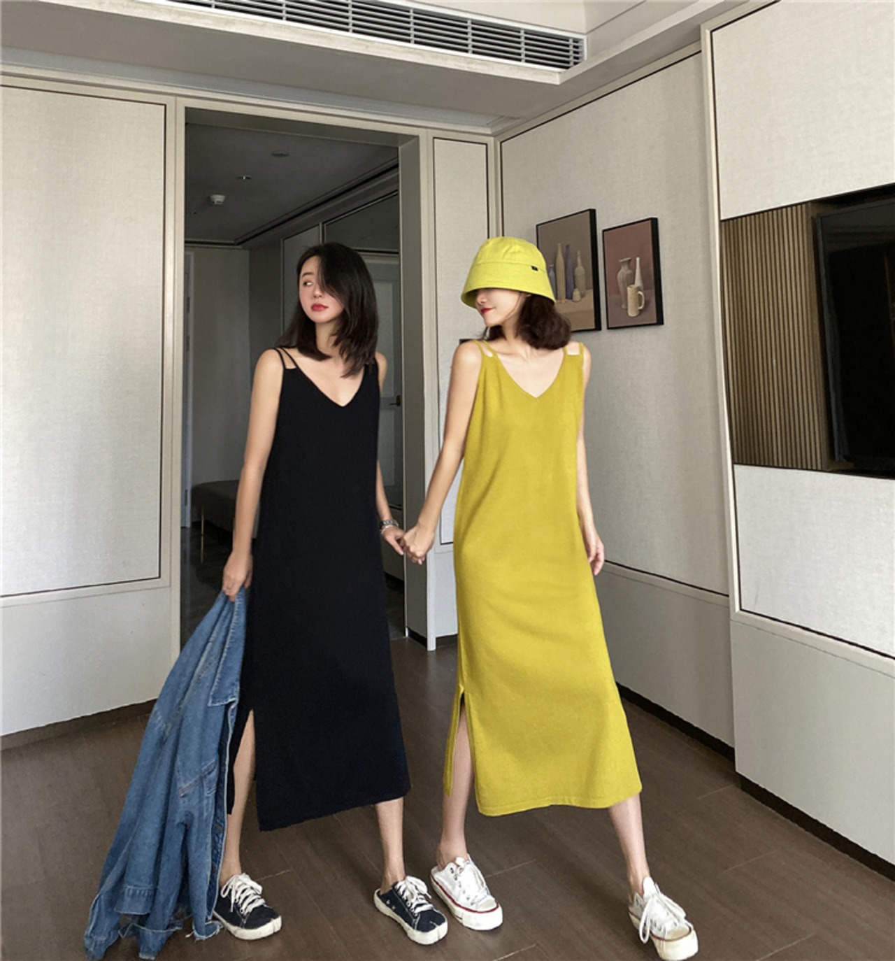 薄手ニットのキャミワンピです。