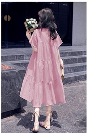 春 夏 レディース ワンピース ミドル丈 膝下 白 桃 2カラー 大きいサイズ 体型カバー ゆったり フレア ふんわり 可愛い きれいめ 清楚 半袖 韓国 きれいめ プチプラ YN-6-42 | dress_sugar_moon