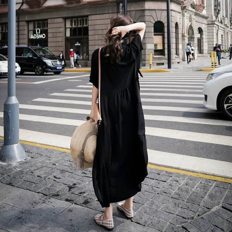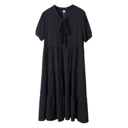 春 夏 レディース ワンピース ロング ロングワンピース リボン リボンタイ おしゃれ シンプル 可愛い 大人 ワンカラー 黒 大きいサイズ 体型カバー ゆったり 韓国 きれいめ プチプラ YN-6-44 | dress_sugar_moon