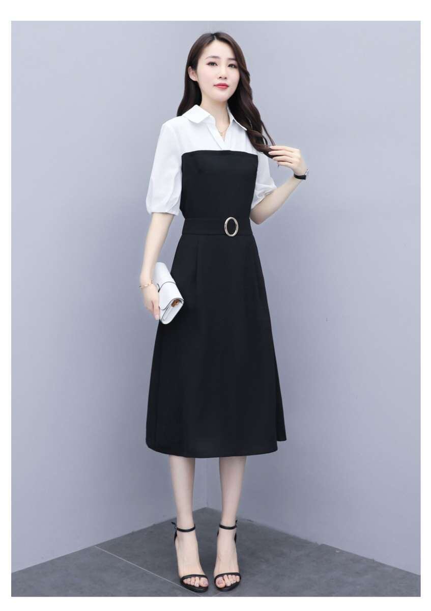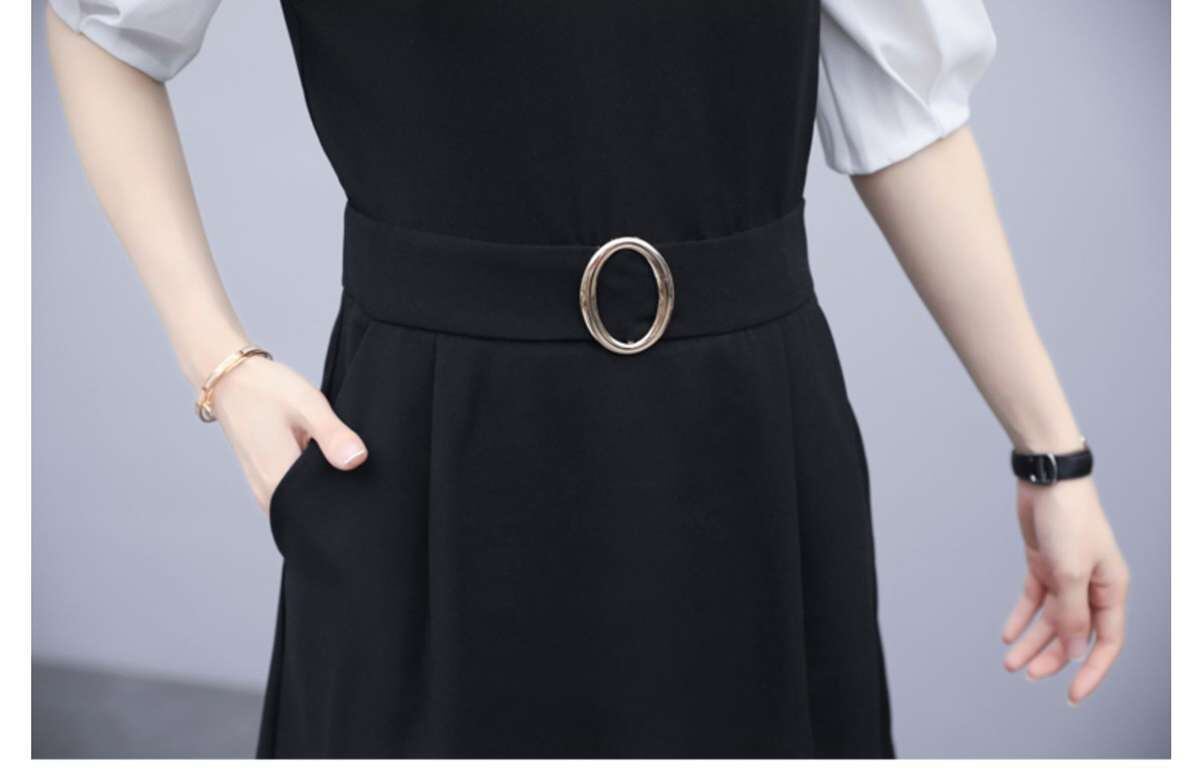 春 秋 レディース ワンピース 重ね着風 ウエストベルト風 ハイウエスト 7分丈 ヒザ下 ミドル丈 おしゃれ きれいめ 清楚 大人 大きいサイズ 体型カバー ゆったり 韓国 プチプラ YN-7-22 | dress_sugar_moon