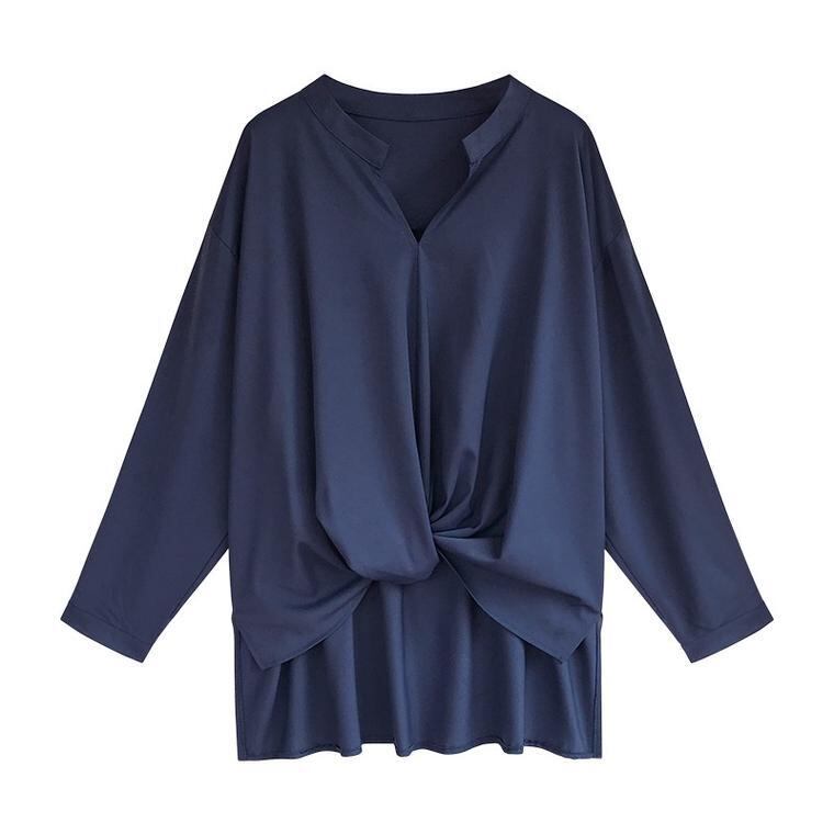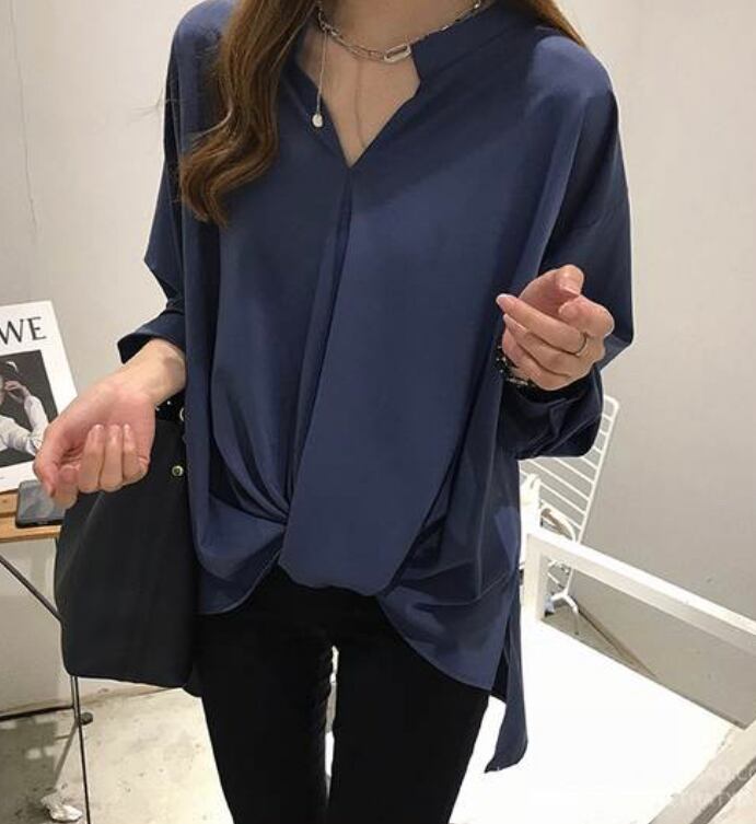 秋 レディース シャツ ブラウス トップス Vネック ねじり おしゃれ 上品 大人 オフィス OL 通勤 緑 青 白 3カラー 大きいサイズ 体型カバー ゆったり 韓国 きれいめ プチプラ YN-7-57 | dress_sugar_moon