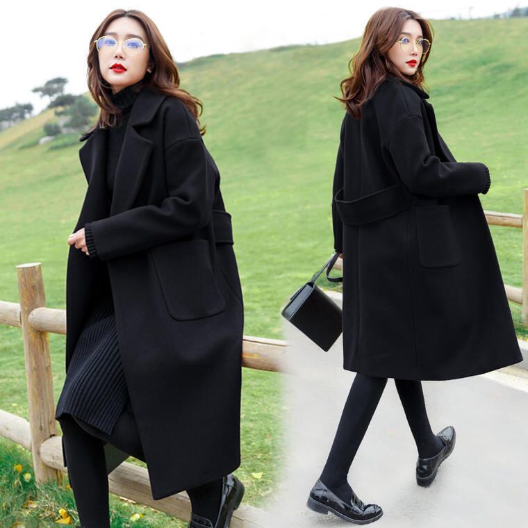 秋 冬 レディース アウター コート トレンチコート ソリッドカラー バックル 紐 パンドラコート 長袖 ミドル丈 シンプル 黒 清楚 大きいサイズ 体型カバー ゆったり 韓国 きれいめ プチプラ YN-7-100 | dress_sugar_moon