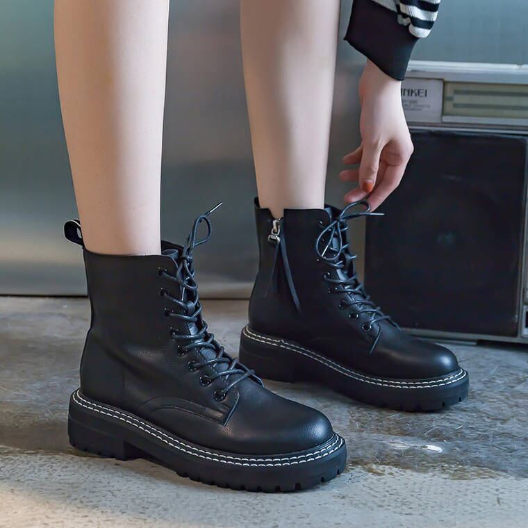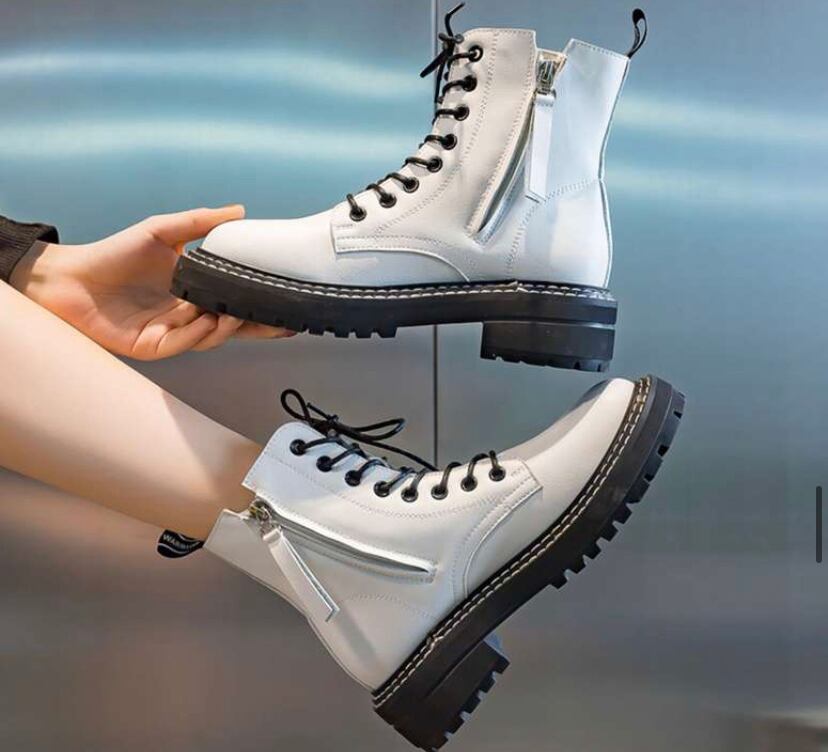 秋 冬 レディース 靴 ブーツ ハイカット ローヒール おしゃれ かっこいい 白 黒 2カラー 22.5cm 23cm 23.5cm 24cm 24.5cm 25cm 原宿系 韓国 きれいめ プチプラ YN-8-15 | dress_sugar_moon